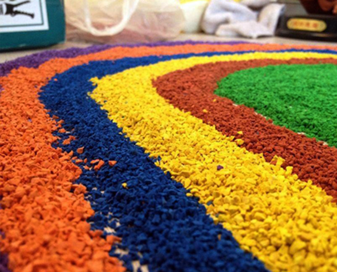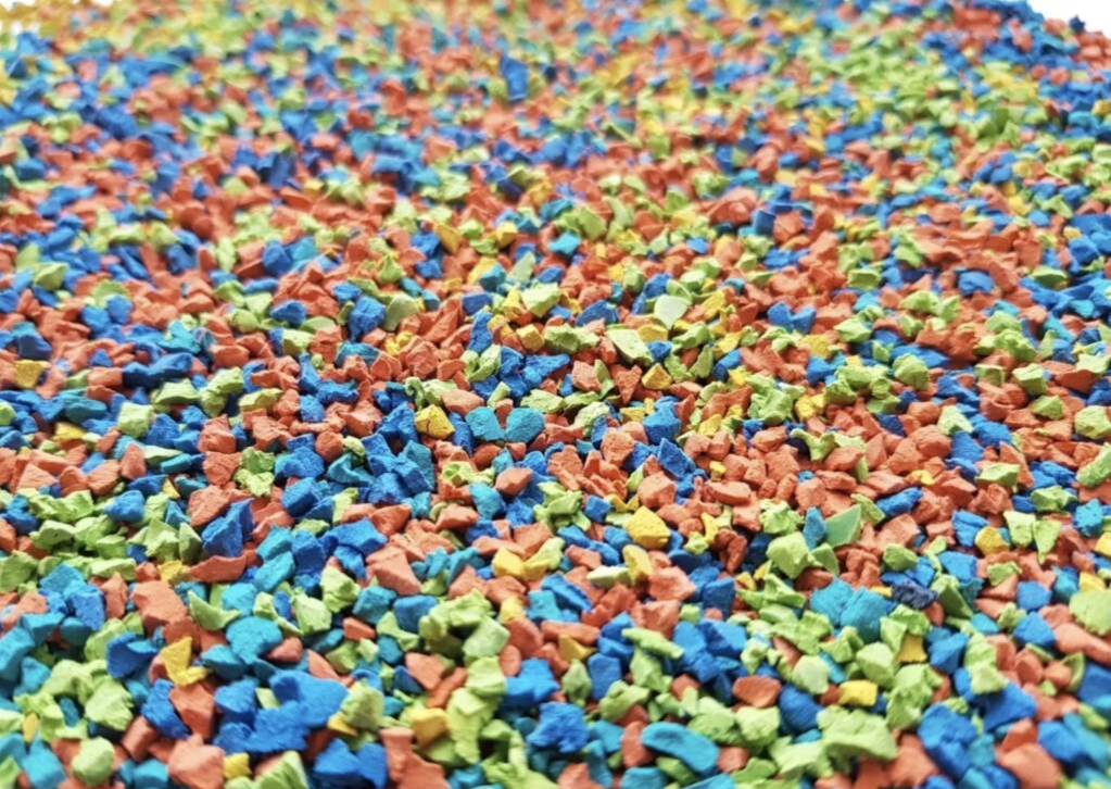Яркий и экологически чистый гранулят. Сделан из каучука. Входит в состав травмобезопасных покрытий спортивных и детских площадок. Материал сохраняет цвет на протяжении всего срока эксплуатации. Устойчив к температурным колебаниям и осадкам.