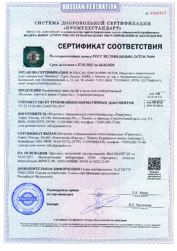 SBR-крошка производится на автоматизированной линии: старые шины после проверки проходят несколько стадий измельчения и три этапа очистки от металлических и текстильных остатков корда, пыли и грязи с использованием сепараторов и систем пылеуловления. На заключительном этапе материал окрашивается стойким пигментом и обрабатывается полиуретаном для защиты цвета.